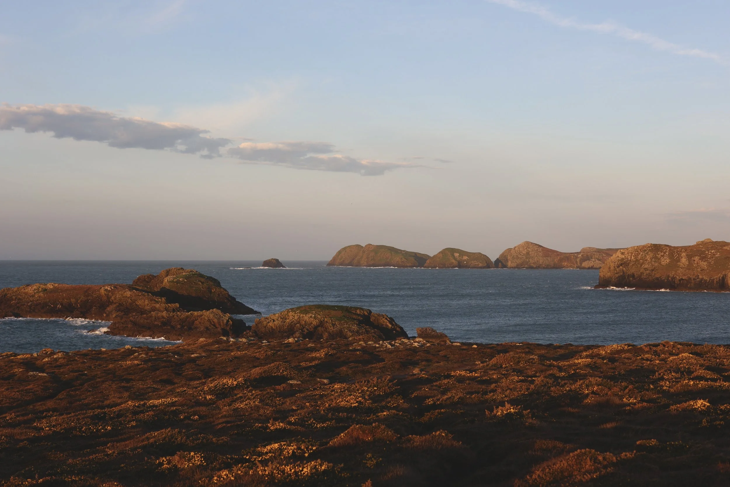 Carreg Fran (Ravens Rock) sits just off the eastern headland of Porthlysgi Bay, close enough to the coast that it shelters the bay's smaller eastern cove from the open sea.